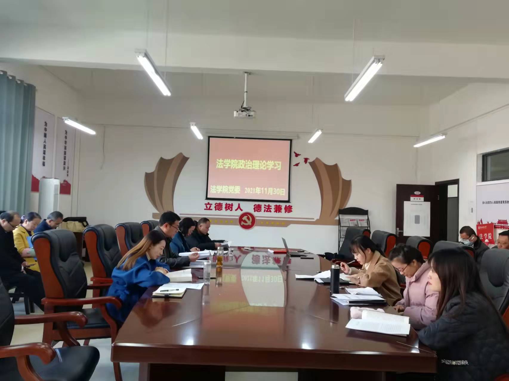 (法学院 图文/母桂花)2021年11月30日下午,法学院党委在文德楼A8-310会议室召开2021年度第十七次教职工政治理论集体学习暨深入学习领会党的十九届六中全会精神专题研讨会。院领导及全院教职工出席会议,院党委书记詹伟主持会议。