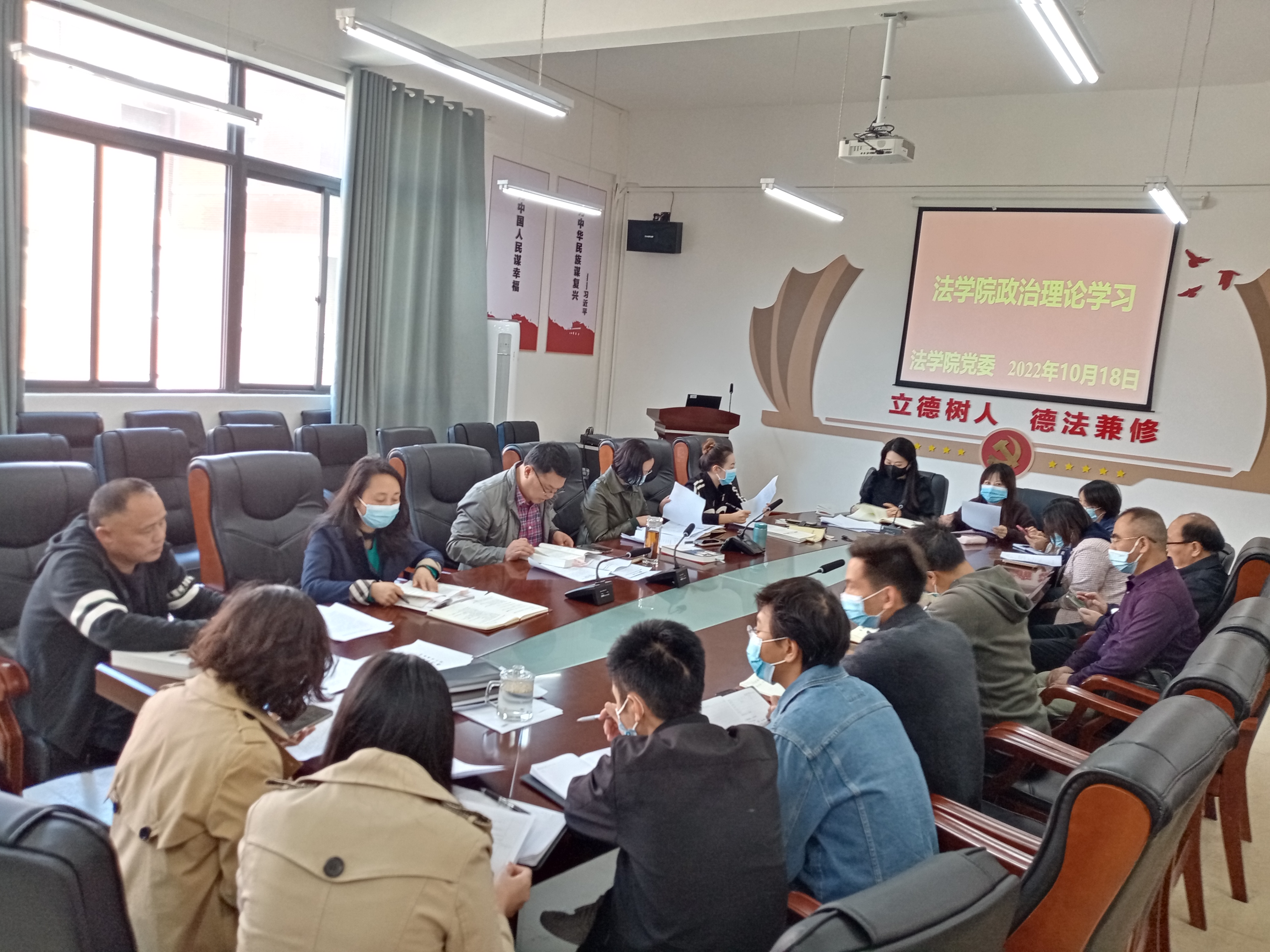 (法学院 图文/报道 徐方)2022年10月18日,法学院党委通过线上线下相结合的方式围绕“《好博(中国)谈治国理政》第四卷选篇暨法学院‘三统筹’工作”专题组织召开本年度第十二次教职工政治理论集体学习研讨会议。院领导及全院教职工出席会议,院党委书记詹伟主持会议。