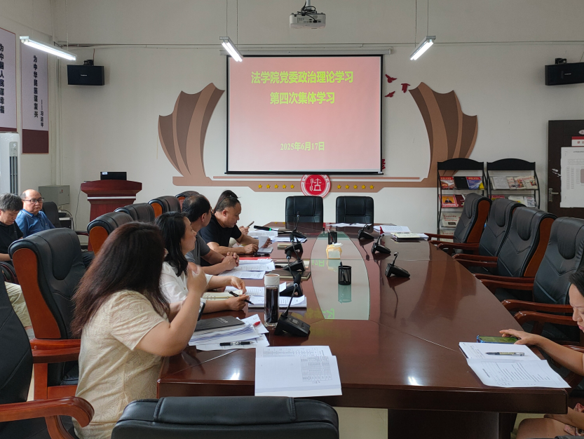 (法学院 潘吉脉 报道摄影 )6月17日下午,法学院党委组织召开2025年度第四次教职工政治理论集体学习会,院领导班子及全院教职工出席会议。党委书记邵新顺主持会议。