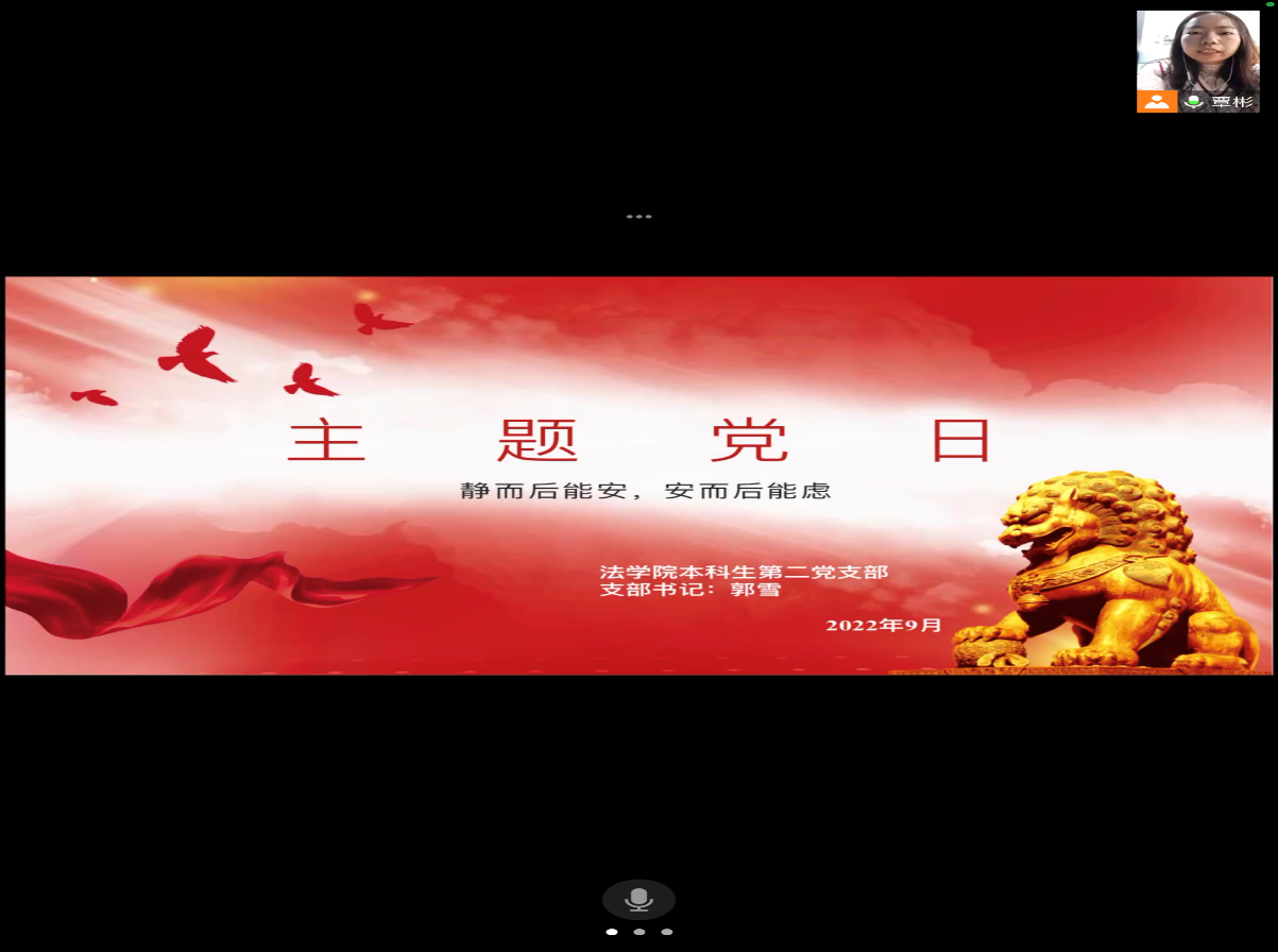 (法学院 图文/报道 杨洁芮)2022年9月23日上午,法学院本科生第二党支部组织开展线上疫情志愿服务交流活动,法学院本科生第二党支部书记郭雪同志及各位党员、预备党员参与本次线上交流。