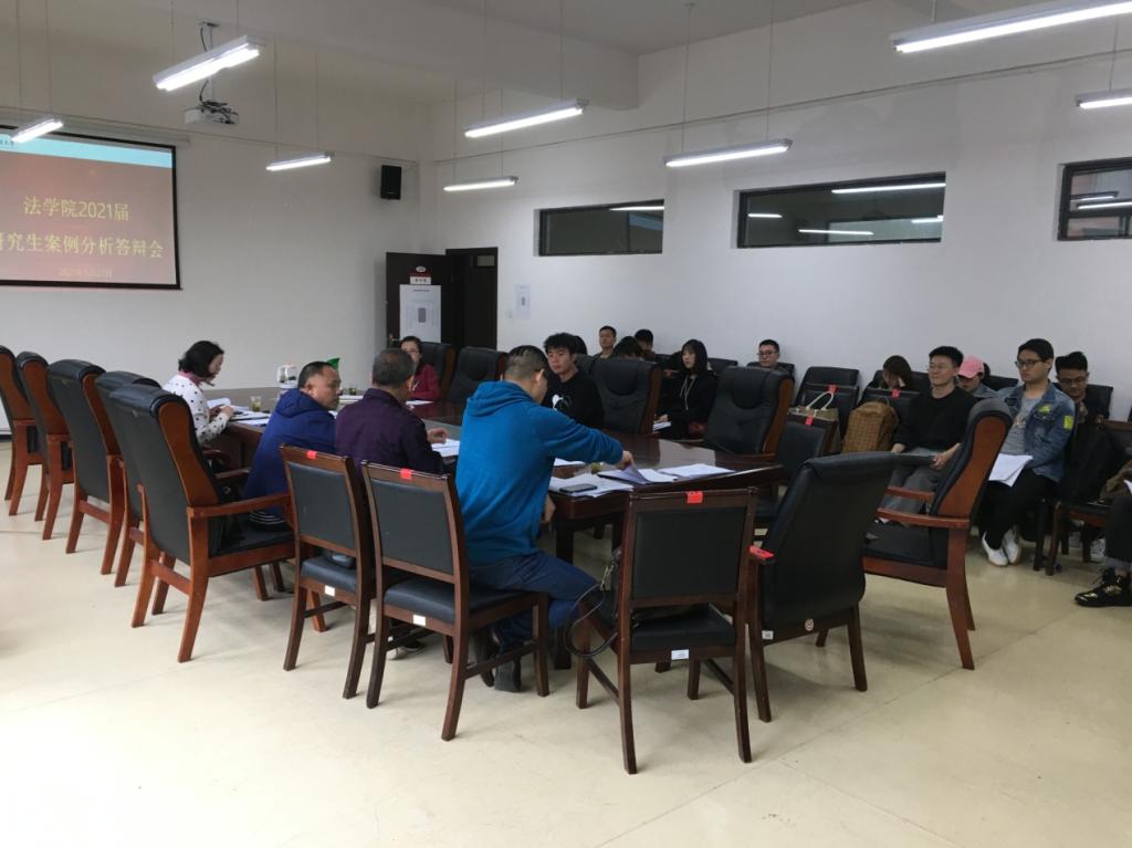 2021年5月28日上午,法学院在文德楼310会议室举行了案例分析答辩汇报会。曹务坤、张斌、阙成平等硕士研究生导师以及2021届法律专硕研究生一起参加,法学院副院长陈玉梅主持会议。