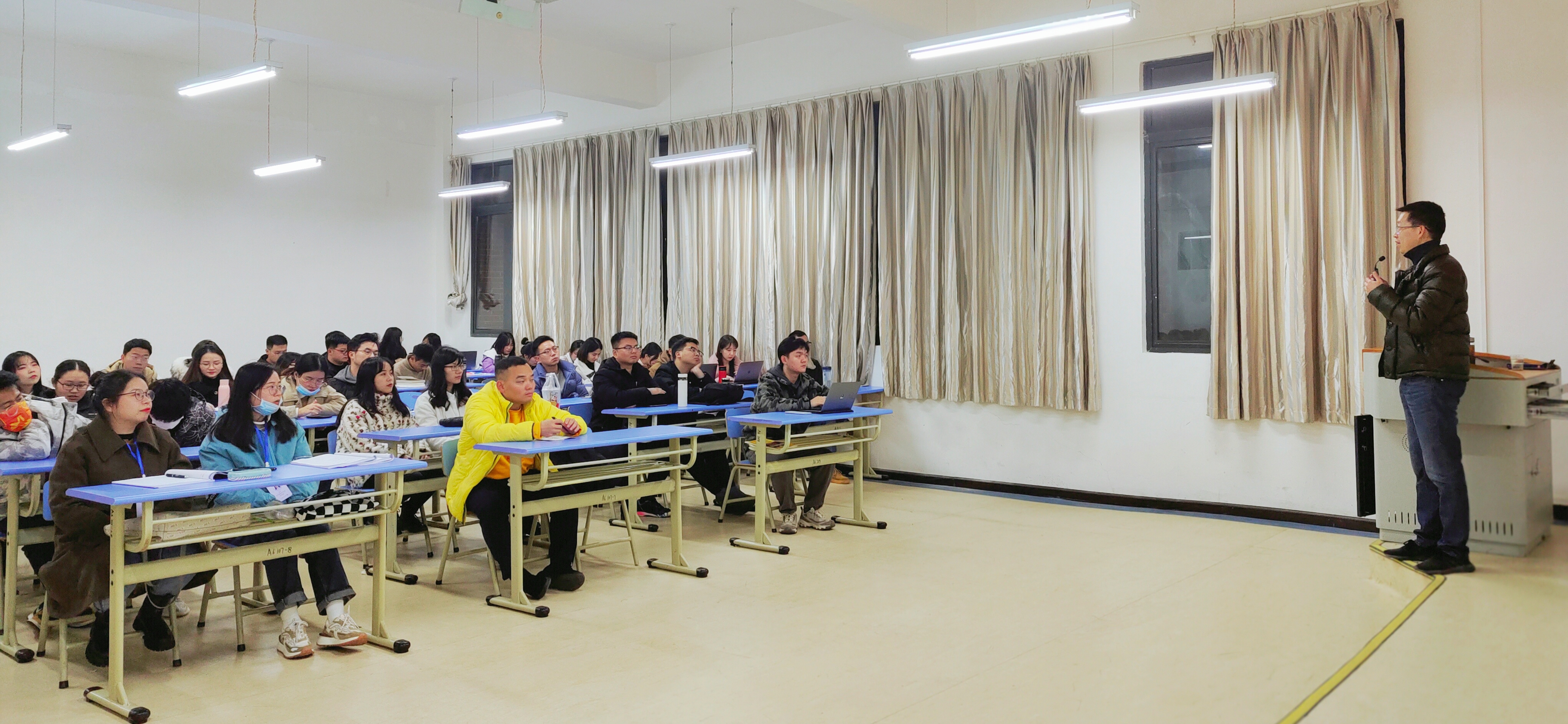 讲座尾声,吉明针对性地带领在坐的研究生分析了研究生与本科生的区别、研究生的优势,向同学们推荐了相关学习APP,对于同学们的职业规划也给出了个人建议。