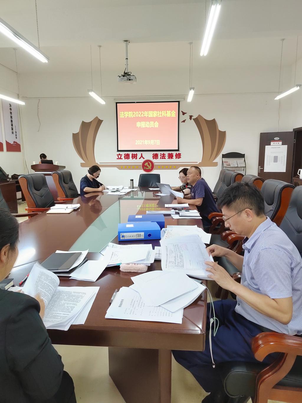 202197日,法学院2022年度国家社科基金课题申报动员会在文德楼A8-310会议室召开。参加会议的人员有法学院全体专任教师,会议由陈玉梅副院长(正处级、主持工作)主持。