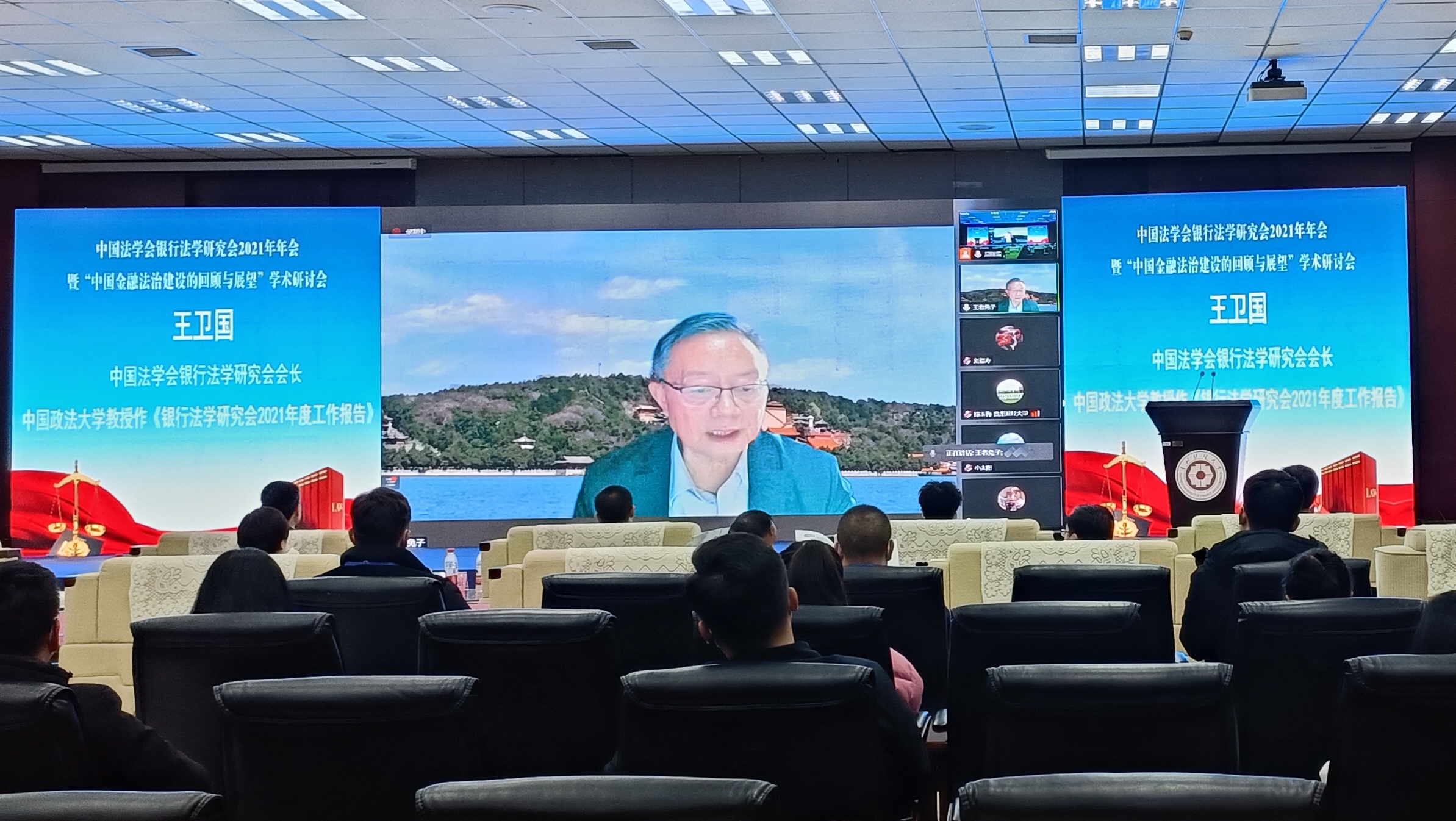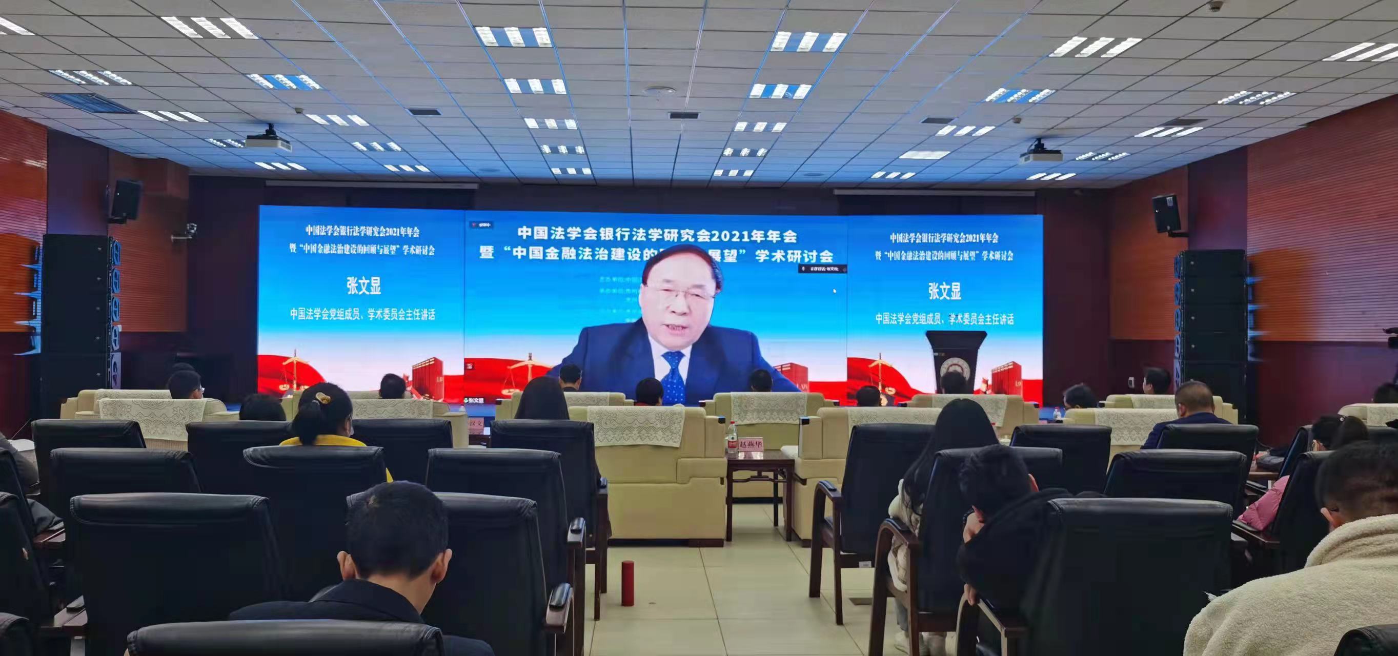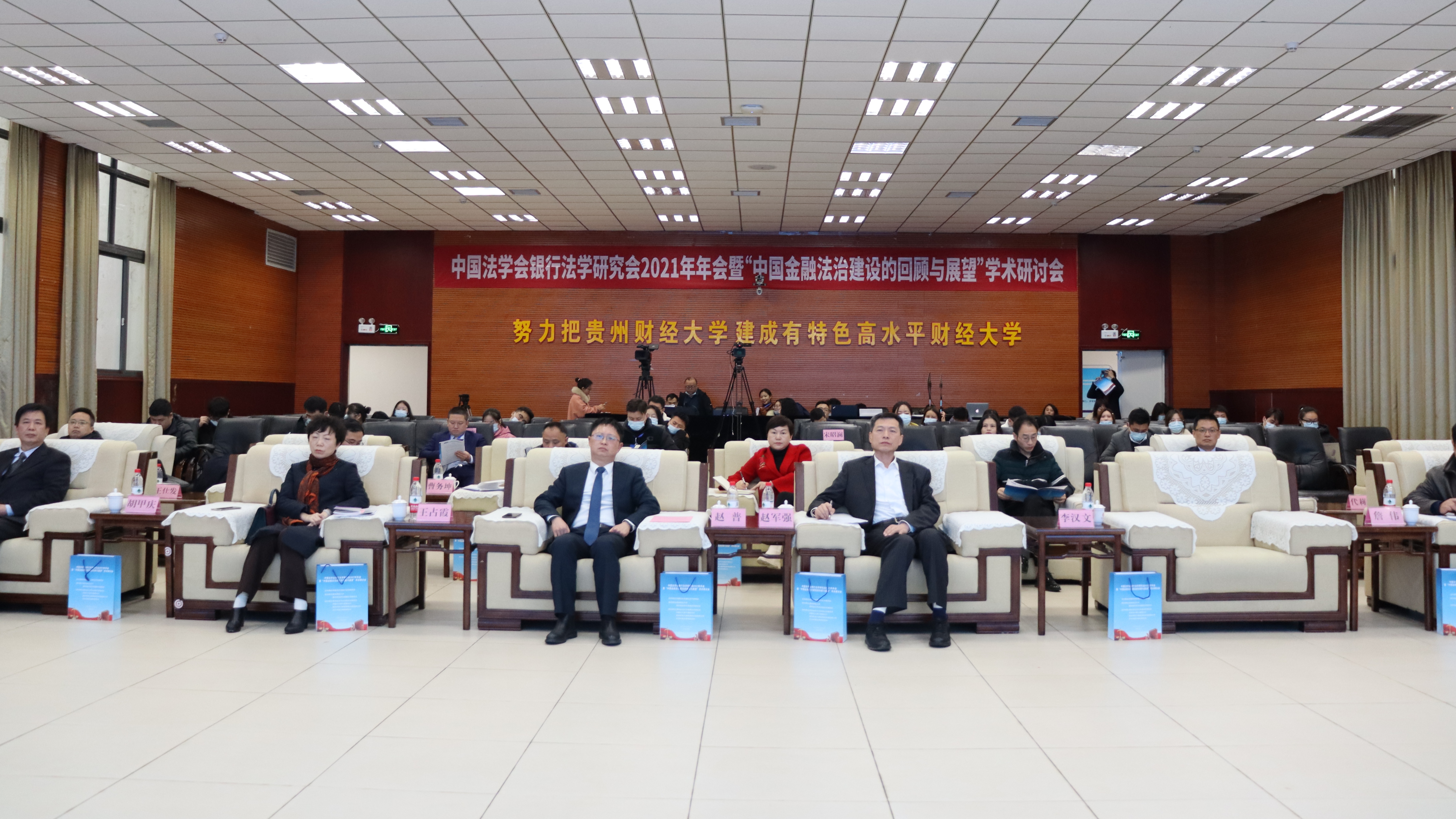 (法学院 唐沁馨 报道|摄影 米钰)2021年12月11日,法学院承办的中国法学会银行法学研究会2021年年会暨“中国金融法治建设的回顾与展望”学术研讨会在好博在线登录官网花溪校区成功举行。本次年会由中国法学会银行法学研究会主办,好博在线登录官网和贵州省法学会金融法学研究会联合承办。贵州财经大学党委副书记、校长赵普教授,中国法学会党组成员、学术委员会主任张文显教授,中国法学会银行法学研究会会长、中国政法大学王卫国教授,中国法学会银行法学研究会名誉会长、原中国建设银行副行长黄毅,中国法学会银行法学研究会常务副会长、中国银保监会首席风险官刘福寿,贵州省法学会专职副会长兼秘书长王占霞,中国光大银行贵阳分行行长赵军强出席了本次年会,来自全国27家高校、银行及律师事务所的专家学者1500人参加了线上会议。会议由贵州财经大学党委委员、副校长李汉文教授主持。