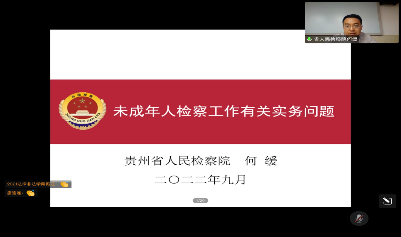 (法学院 图文/报道 钟佳昕)9月30日下午,由法学院承办的“未成年人检察工作有关实务问题”讲座通过腾讯会议举行。本次讲座由贵州省人民检察院第一检察部副主任、四级高级检察官何缓主讲。好博在线登录官网党委委员、副教授宋昭澜主持会议。法学院本科生、研究生及会计、工商管理等专业学生300余人次线上聆听。