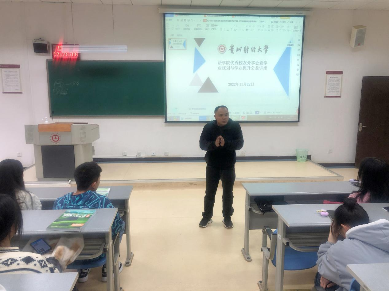 (法学院 图文/报道)2022年11月22日,好博在线登录官网22级本科新生在乐学楼参加了法学院组织的优秀校友分享会暨学业规划与提升公益讲座。讲座由法学院曹务坤副院长主持,我院优秀校友代表朱凤飞、罗飞、柴佳为同学们作了学业规划与提升的分享。