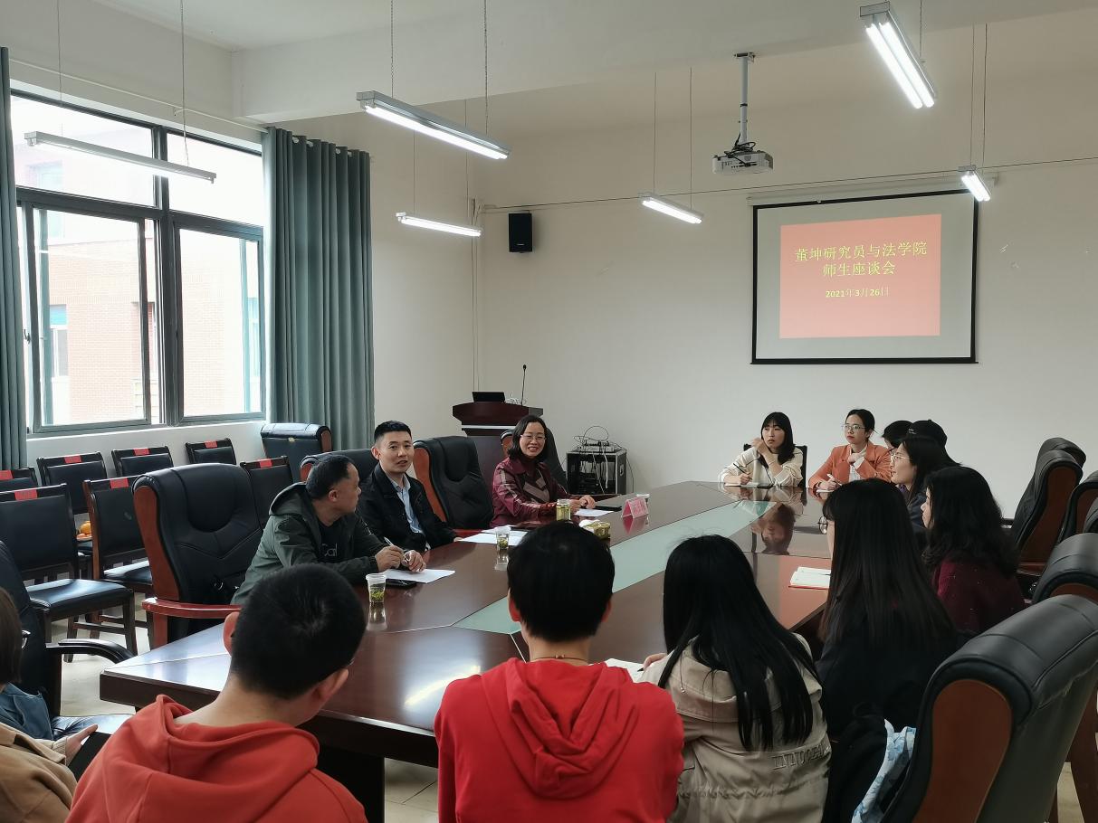 3月26日下午,应学院邀请,中国社会科学院法学研究所研究员、全国十大杰出青年法学家、第十三届全国青联委员董坤与法学院师生开展了学术交流座谈会。座谈会在文德楼310会议室举行,座谈会由法学院副院长陈玉梅教授主持。